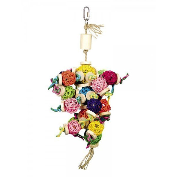 Hračka pre papagáje - hračka s ratanovými guličkami s rozmerom 37x18cm.