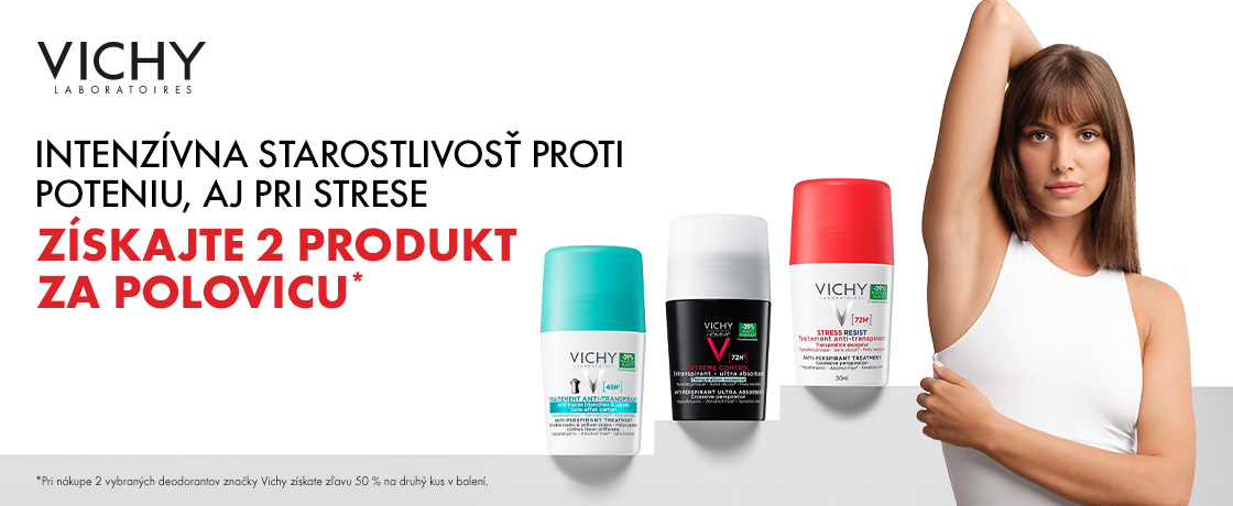 Nedajte šancu nadmernému poteniu a nepríjemnému zápachu. Vyberte si pre seba ideálny dezodorant alebo antiperspirant z radu kozmetiky Vichy Deo. Pre citlivú pokožku je vhodný dezodorant bez obsahu alumínia a alkoholu, obohatený o minerály. Pri nadmernom potení zas bude účinný intenzívny antiperspirant, s účinnosťou až 72 hodín. Kozmetika z radu Vichy Deo je mimoriadne účinná, no zároveň šetrná k pokožke. Samozrejmosťou je príjemná vôňa.
