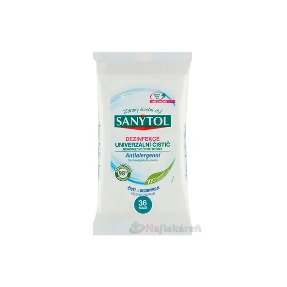 SANYTOL DEZINFEKCIA UNIVERZÁLNY ČISTIČ Utierky jednorazové, antialergénne, 1x36 ks