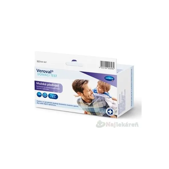 Veroval Test MUŽSKÁ PLODNOSŤ - Domáci rýchlotest určuje koncentráciu spermií v ejakuláte. Použitím testu môže muž rýchlo a bezpečne zistiť, či jeho ejakulát obsahuje dostatok spermií na oplodnenie vajíčka. Všetko, čo na to potrebujete, je malé množstvo ejakulátu a sedem minút vášho času. Rýchlotest zisťuje, či je počet spermií v normálnom rozsahu (podla WHO, príručka číslo 4, min. 20 mil. spermií/ml) alebo nie.