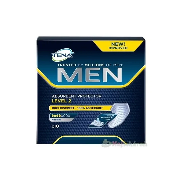 Absorpčné pomôcky TENA Men sú špeciálne vyvinuté pre mužov s ľahkým až stredným únikom moču.