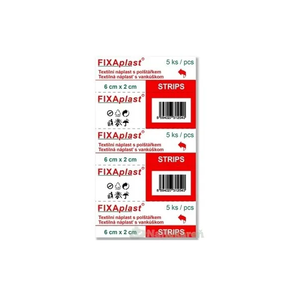FIXAplast STRIPS náplasť textilná s vankúšikom (6x2cm) 5ks