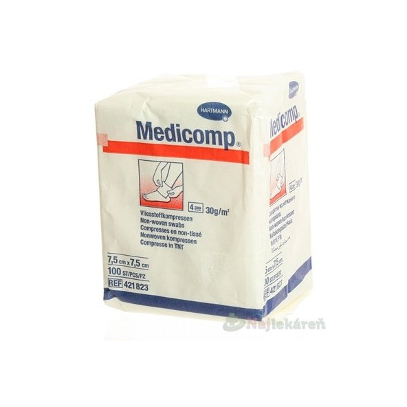 MEDICOMP kompres z netkaného textilu, nesterilný (7,5x7,5cm) 100ks