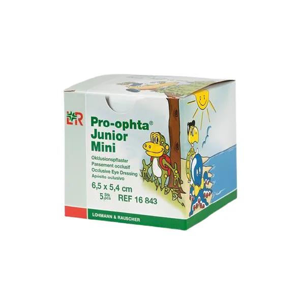 PRO-OPHTA JUNIOR MINI očné krytie je určené pre deti a slúži na ošetrenie oka ako ochrana po operáciách očí veľmi dobre sa prispôsobuje kontúram tváre, lepidlo dobre fixuje i pri dlhodobom použití a krytie sa napriek tomu dá ľahko odstrániť krytie je vyrobené z veľmi tenkej netkanej textílie a poréznej vrstvy lepidla. Vyznačuje sa vysokou priedušnosťou.